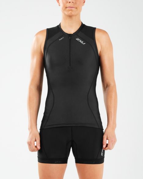 2XU Compression Tri Singlet, Damen, Black/Black