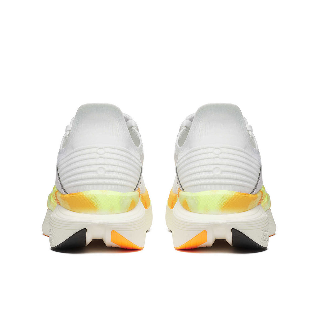 - Durchgehende Carbonfaserplatte, geschlitzt für bessere Flexibilität im Mittelfußbereich, mit Sauconys weit vorne positionierten Trittpunkt – Sauconys aggressivstes Modell für Renntage.