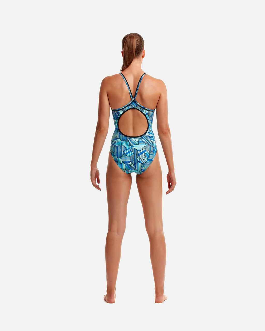 Der Diamond Back ist der klassische Trainingsbadeanzug von Funkita für Damen. Das Model hat verstärkte Träger, einen verkleinerten Rückenausschnitt und das Bein ist normal hoch geschnitten, für deine perfekte Trainingseinheit im Wasser. Damit auch nichts rausblitz hat der Badeanzug ein zusätzliches Futter im Frontbereich.