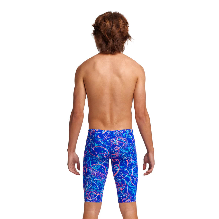 Der Trainingsjammer von Funky Trunks ist eine beliebtes Modell für Schwimmer und Triathleten. Die Nähte sind extra flach, die Beinöffnung ist bequem geschnitten und für besseren Halt gibt es im Bund einen Kordelzug. Durch das verwendete, chlorbeständige C-Infinity-Gewebe, bleibt der Jammer so strahlend wie am ersten Tag.