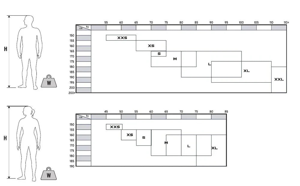 Neoprengröße Bezeichnung Körpergröße in cm Körpergewicht in kg